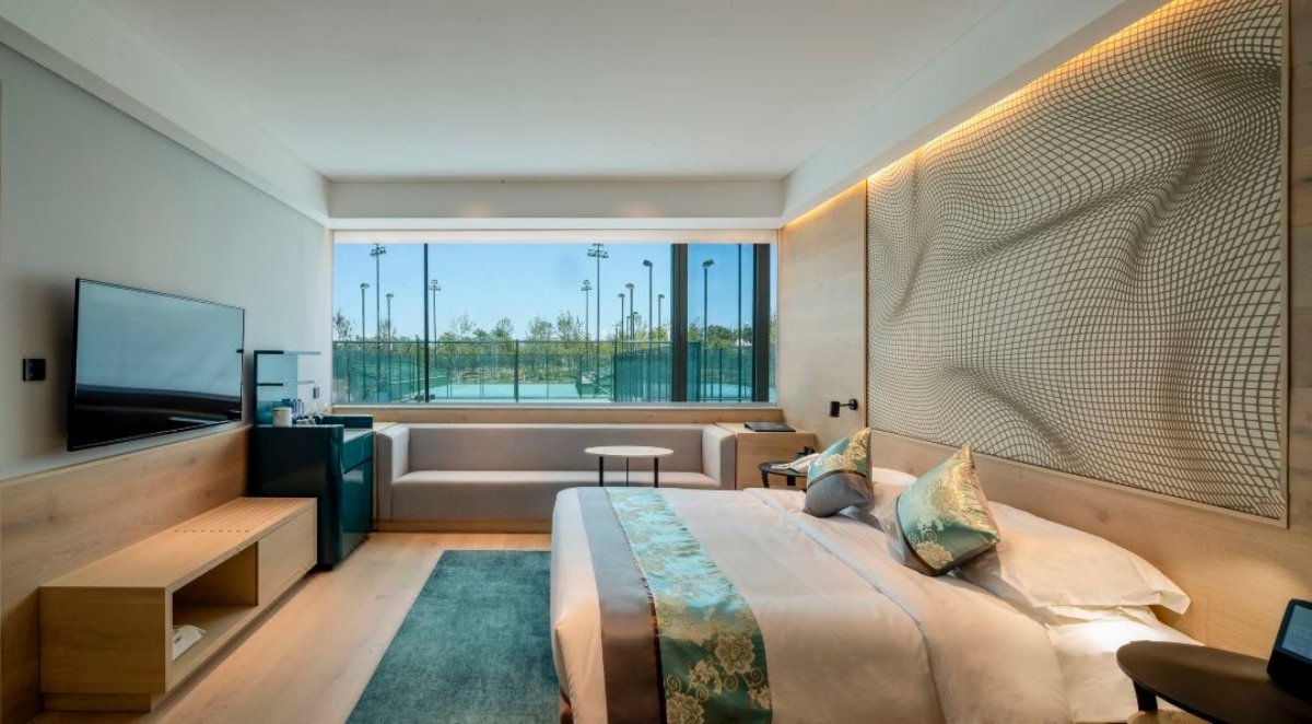 北投綠心網(wǎng)球酒店位于北京市通州區(qū)、北大運(yùn)河南畔,城市綠心森林公園內(nèi)。酒店交通便捷通達(dá),距北京城市副中心三大建筑(大劇院、圖書館、博物館)5分鐘車程,距離北京市級行政中心10分鐘車程,距環(huán)球影城15分鐘車程,距首都機(jī)場39分鐘車程。為方便住客游玩,酒店還為前往環(huán)球影城的住客提供免費(fèi)的往返接駁班車服務(wù)。